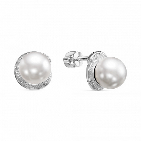 Серьги с иск.жемчугом и фианитом родированные серебро 925*