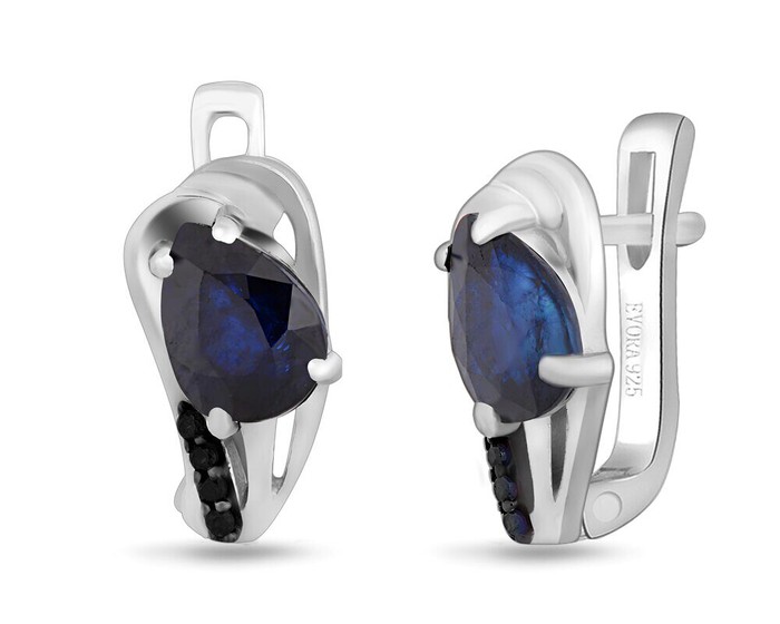 Серьги, арт.656224 Серебро Серебро 925, 2,75 гр., сапфир корунд , шпинель