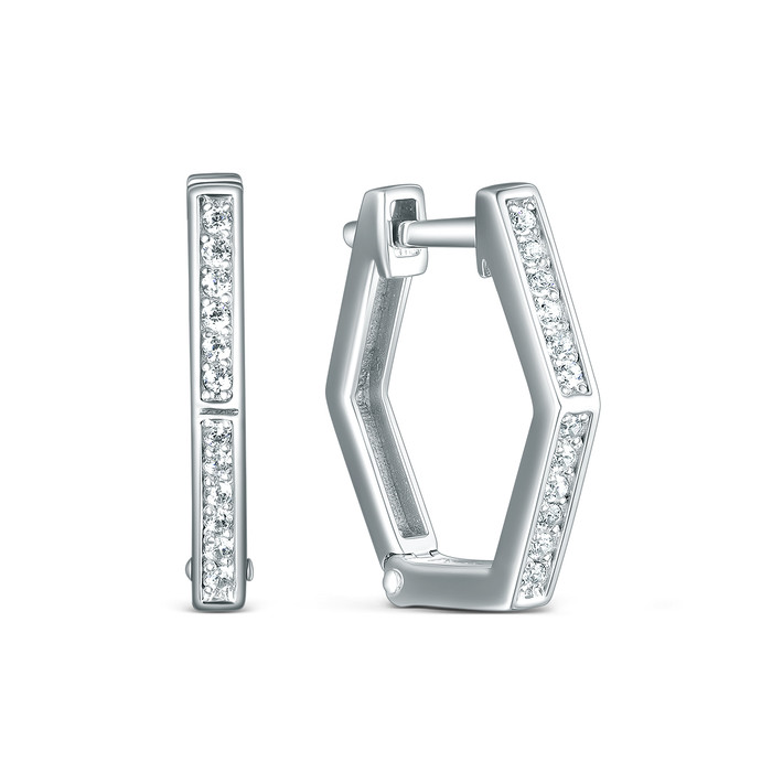 Совместные закупки Екатеринбург Ювелирные украшения и бижутерия Серьги — Серьги восьмиугольники из серебра с фианитами родированные 925 пробы 2-016р200