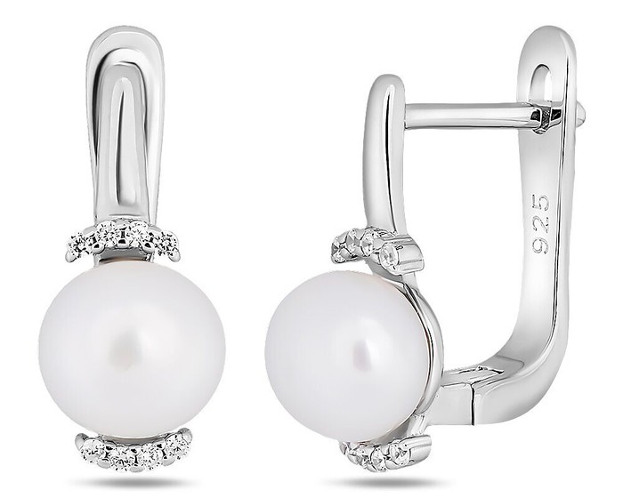 Серьги, арт.657370 Серебро Серебро 925, 2,94 гр., жемчуг