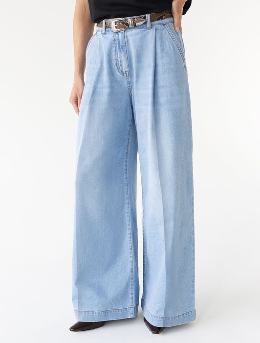 Состав: 82%Хлопок 13%ПЭ 5%ПУ Плотность: 10,3 OZСвободные широкие джинсы голубого цвета с защипами из эластичного денима плотностью 10,3 OZ созданы для тех, кто ценит комфорт и стиль в повседневной жизни. При производстве джинсов применена технология «вареные швы», которая основана на локальном вымывании красителя из плотных участков ткани — сгибов и швов — за счет механического воздействия во время промышленной стирки. Стоун вошинг - энзимная стирка с камнями. Камни воздействуют на ткань, выбивая краску на швах, создавая контрастные мраморные потертости и мягкость. Модель отличается свободным кроем, который обеспечивает удобство движений и гармонично подчеркивает современный силуэт. Защипы добавляют изюминку и делают образ более интересным, а также визуально вытягивают силуэт. Благодаря использованию эластана материал сохраняет свою форму даже после длительной носки и многочисленных стирок.