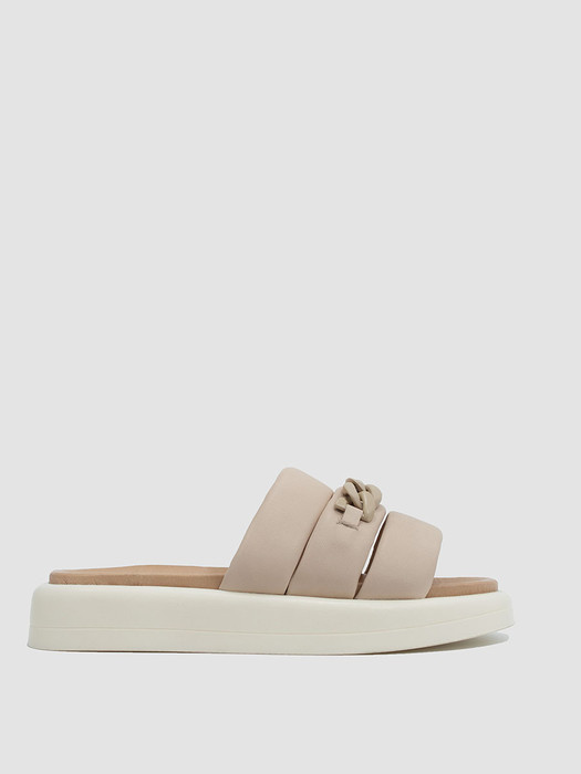 Объемные шлепанцы из натуральной кожи – стильный и комфортный летний тренд 2022. Три мягкие дутые лямки украшены крупной цепочкой в тон кожи. Из натуральной кожи сделаны верх, внутренняя часть лямок и стелька. Материал пропускает воздух и отводит влагу, стопам будет комфортно даже в жару. На внутренней стороне лямок нет выступающих швов, они не будут давить и натирать. Анатомическая стелька с высокими бортиками фиксирует стопу при ходьбе и позволяет ей максимально удобно располагаться в обуви.