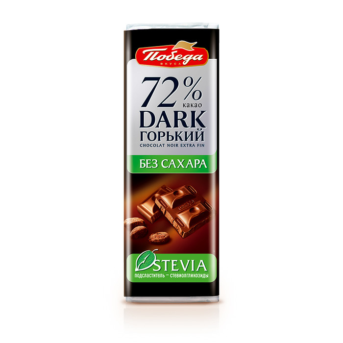 Горький шоколад без сахара, 72 % – любимая классика шоколада с повышенным содержанием какао от «Победы» на натуральном сахарозаменителе – стевиолгликозиде. Стевиолгликозид – очищенный экстракт растения стевии (Stevia rebaudiana), который придает листьям сладкий вкус. Стевия родом из Южной Америки. Это уникальный природный сахарозаменитель, не имеющий аналогов благодаря особенной сладости и натуральному происхождению. В рецепте шоколада также присутствует инулин – натуральный пребиотик, нормализующий пищеварение.