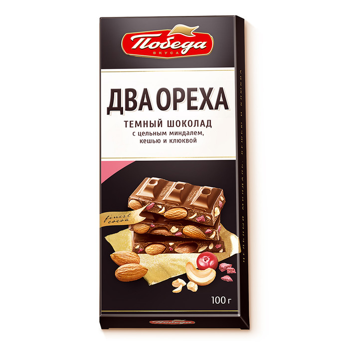 Все знают, что шоколад и орехи просто созданы друг для друга. В нашей гурманской ореховой серии в каждой из представленных орехово-шоколадных композиций присутствует и оригинальный вкусовой акцент. В этой плитке – много цельного миндаля и тёмный насыщенный шоколад с высоким содержанием какао-бобов в мягкой обжарке. С добавлением дробленого кешью и терпкой клюквой. Для тех, кто всегда ищет новые впечатления.
