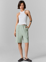 Шорты выполнены из плательной ткани. Шорты расширены к низу, низ шорт на манжетах. Талия завышена. Карманы в боковых швах. Пояс притачной, завязывающийся на бант, частично на эластичной тесьме.