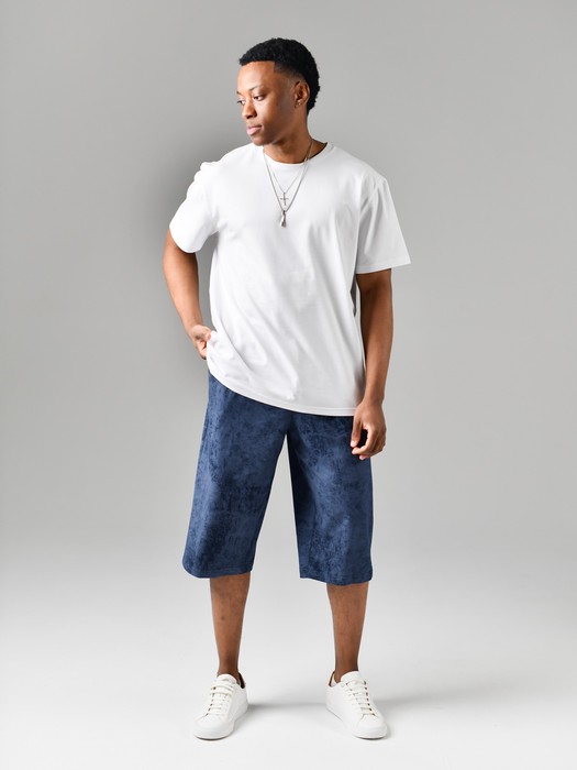 Шорты мужские из трикотажного полотна "кулирка" с набивным рисунком, удлиненные, на притачном поясе с эластичной тесьмой внутри, с карманами в боковых швах, входы в которые окантованы основным материалом.