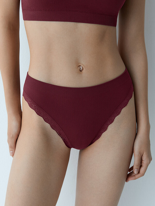 Комфортные трусы-слипы в рубчик со средней линией талии, узкой боковиной и высоким вырезом по бедру. Вырезы по линии бедра обработаны ажурным кружевом с изящным цветочным рисунком.