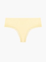 Комфортные трусы-слипы в рубчик со средней линией талии, узкой боковиной и высоким вырезом по бедру. Вырезы по линии бедра обработаны ажурным кружевом с изящным цветочным рисунком.