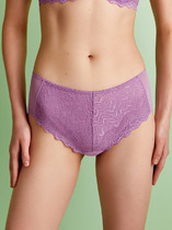 Трусы - слипы со средней линией талии и узкой боковиной. Практически полностью закрывают ягодицы. Изготовлены из высокогигиеничного  хлопка, который отлично пропускает воздух, впитывает влагу, не подвержен деформации и пилингу, приятно прилегает к телу и подходит даже для самой чувствительной кожи. Края, обработанные мягкими эластиками с кружевными фестонами, создают дополнительный комфорт.