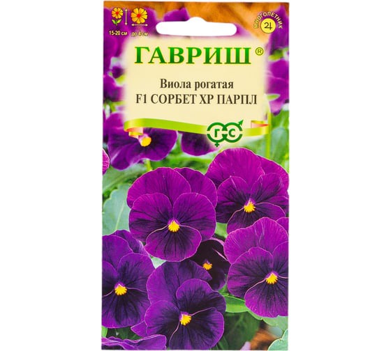 «F1 Сорбет» - очень популярная серия среди профессиональных озеленителей. Формирует компактный аккуратный кустик, усыпанный довольно крупными для рогатой виолы цветками (до 4 см). Благодаря раннему, обильному и непрерывному цветению (с мая по сентябрь) на кустике распускается до 60 цветков. Гибрид идеально подходит для создания цветочного ковра в саду, оформления альпийской горки, выращивания на балконе или подоконнике. Особый национальный колорит приобретает растение, высаженное в цветочный горшок, расписанный под хохлому или гжель. Предпочитает легкую почву. Размножается семенами и делением куста. При длительном выращивании наблюдается обильный самосев. Семена можно высевать ранней весной (от посева до начала цветения проходит 10-13 недель) и осенью, предпочтительнее с 10 августа по 10 сентября. При посеве осенью, после укоренения, листовые розетки обрезают, удаляя цветоносы. Для получения дружных всходов при весеннем посеве семена стратифицируют при температуре +10оС. Виола рогатая предпочитает умеренные температуры, поэтому ее рекомендуется высаживать в полутени, либо в комбинации с более высокими растениями, защищающими от перегрева. Отлично смотрится на полутенистой альпийской горке.