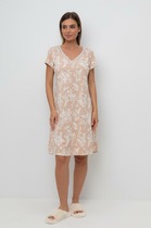 Сорочка женская выполнена из вискозного трикотажа, верх полочки и низ изделия оформлены нежным эластичным кружевом. Материал сорочки обладает высокой растяжимостью, великолепно садится на фигуру, обеспечивая удобство и комфорт его обладательнице. Модель сшита в двух классических цветах, черный и беж, поэтому она отлично подойдет в качестве белья под длинное платье, в этом случае следует выбирать свой размер. Если же изделие планируется использовать для сна и отдыха, любительницам свободной посадки можно выбирать на размер больше.