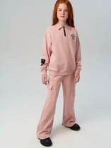 Спортивный костюм для подростков. Состав: Футер 2-х ниточный, 75% хлопок, 20%  полиэстер, 5%  лайкра. Особенности: Брюки зауженные к низу, собранные на эластичный манжет, цветная вставка ниже колена, отделочные строчки и декоративные швы, пояс на резинке с регулировкой объёма. Таблица размеров и ростов Размер 36 38 40 42 44 Обхват груди, см 64-66 68-70 72-74 76-78 80-82 Обхват талии, см 58-62 64-68 70-74 76-80 82-86 Обхват бёдер, см 70-74 74-78 78-82 82-86 86-90 Рост, см 134-140 140-146 146-152 152-158 158-164