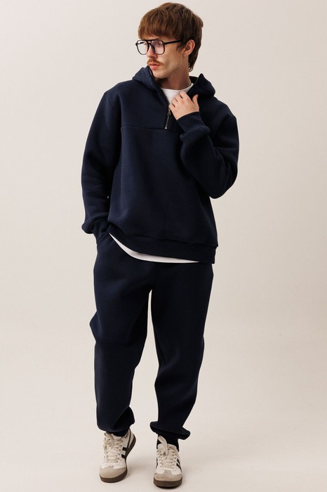 Этот спортивный костюм от GOwear отлично подойдет для дома, прогулок, путешествий и отдыха. Сделан из теплой, комфортной ткани. Состоит из джемпера и брюк. Джемпер имеет  двойной капюшон и короткую застежку - молнию черного контрастного цвета по центру переда. На переде с левой стороны выполнена вышивка в цвет ткани, а также расположена горизонтальная кокетка. Джемпер имеет прямой силуэт. Низ джемпера и манжеты выполнены из кашкорсе.  Брюки зауженные к низу с притачным поясом (резинка и шнурок внутри). Брюки с боковыми карманами. По низу брюк – манжеты.