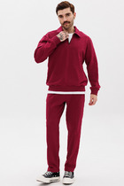 Для образа игрока в гольф не хватает воротничка! Воротник - деталь свитшота с застежкой поло, которая почекнет весь аутфит. Брюки со стрелками добавят образу строгости и деловитости, что позволит носить костюм как на прогулки, так и в офис. Пошит из комфортной ткани - футера 3-нитки без начеса.