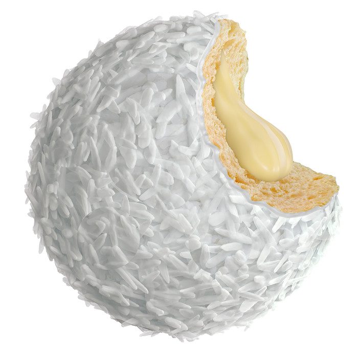 STOKSON Пончик Берлинер начинка Кокос-Миндаль белая глазурь и кокосовая стружка