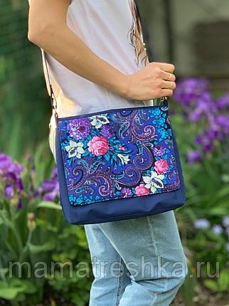 Внутри одно большое отделение и два кармана один из которых на замке. Плюс дополнительный боковой карман. Застежка- кнопка-магнит. Широкая удобная лямка с регулируемой высотой.