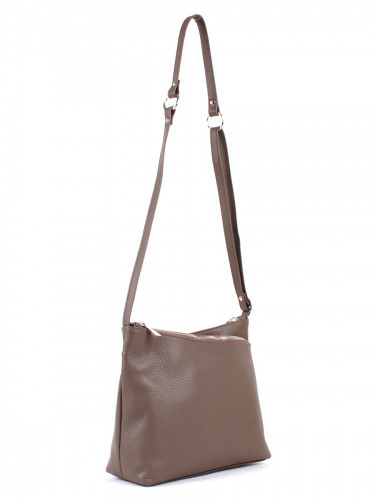 Сумка с тремя отделениями, два закрываются на молнии, одно - на магн.кнопку. Внутри карман д\сотового и карман на молнии. На задней стенке карман на молнии. Высота ручки 65см.