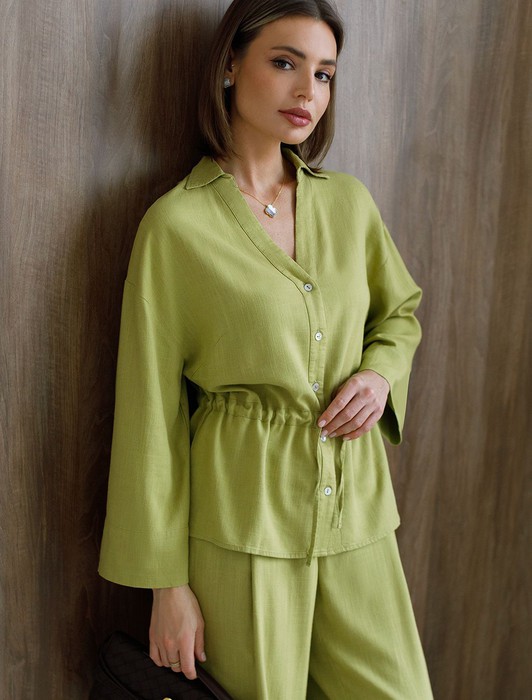 Совместные закупки Екатеринбург Женская одежда Костюмы, комплекты — Свободная блузка с кулиской на талии изо льна с вискозой