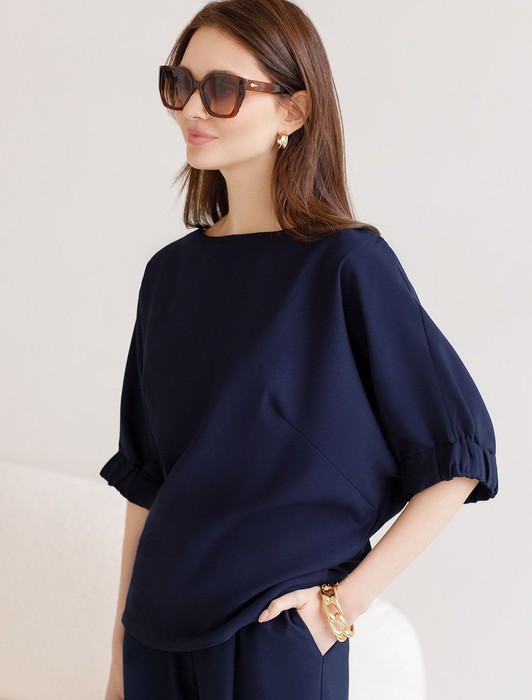 Состав: 76%Лиоцелл (Вис) 24%ПЭ Плотность: 180 Г/м2Свободная блузка темно-синего цвета выполнена из плотного лиоцелла. Лиоцелл это более дорогой и экологичный вариант вискозы, очень прочный и шелковистый. Современная интерпретация кроя «летучая мышь» дополнена акцентными эластичными манжетами. Эта блузка идеальна для любого типа фигуры, в том числе и на королевские размеры. Этот крой создан для того, чтобы мягко скрыть лишние объемы. Эта повседневная блузка с вырезом лодочка создана для легкого и утонченного стиля. Мягкие линии кроя создают невероятно эффектный образ, который подчеркивает естественную красоту, не стесняя движений, а свободный фасон дарит ощущение абсолютного комфорта и уверенности. Блузка красиво драпируется при движении, создавая летящий, воздушный эффект.