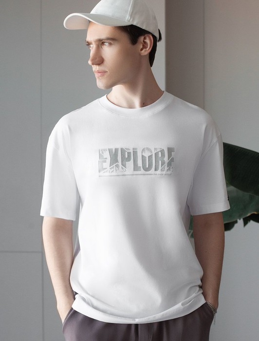 Состав: 92%Хлопок 8%ПУ Плотность: 170 Г/м2Перевод принта: Explore the great outdoors - исследуй мир. Футболка свободного кроя выполнена из премиального хлопка. Авторский принт нанесен красками с устойчивым покрытием. Благодаря эластану, носить изделие очень комфортно, и оно сохранит свой безупречный вид в течение долгого времени. На рукаве нашивка из эко-кожи с логотипом бренда.