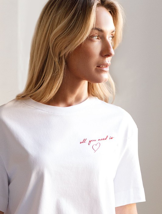 Состав: 92%Хлопок 8%ПУ Плотность: 170 Г/м2Модная футболка белого цвета привлекает внимание своим интересным дизайном и ярким принтом. Благодаря прямому крою изделие комфортно садится на любую фигуру, в том числе на большие размеры, и не сковывает движений. Круглый вырез подчеркивает современный стиль, а натуральный материал из хлопка с добавлением эластана обеспечивает удобство в повседневной носке и приятные тактильные ощущения. Прочность и износостойкая структура позволяют сохранять свежий внешний вид после множества стирок. Принт в виде надписи и сердца нанесен красками с устойчивым покрытием, перевод надписи: Al you need is love- Все, что вам нужно это любовь. Стильная футболка гармонично вписывается в любой гардероб и подойдет для прогулок, отдыха или неформальных встреч. Благодаря особенностям кроя модель хорошо сидит, скрывая недостатки и подчеркивая достоинства. Яркая футболка идеально сочетается с базовыми вещами, позволяя создавать новые интересные образы каждый день.