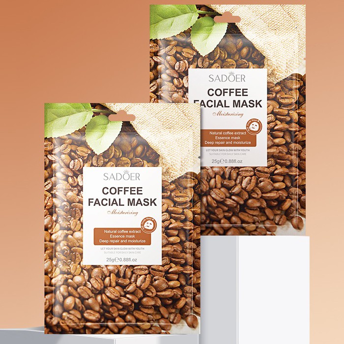 Тканевая маска с экстрактом кофе Sadoer прекрасно тонизирует и освежает, мягко осветляет и улучшает общий тон кожи. Оказывает ревитализирующее действие, возвращает лицу здоровый вид и естественное сияние.Маска обладает восстанавливающим и противоотёчным действием, повышает эластичность тканей и замедляет процессы старения.
