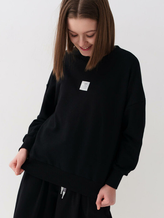 Свитшот оверсайз для девочки подростка. Выполнен из хлопкового футера без начеса. На передней части — нашивка. Низ изделия и рукава оформлены эластичными резинками.