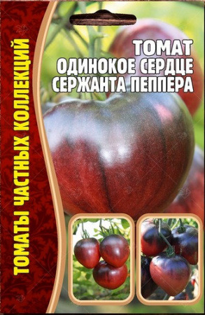 Томат Одинокое Сердце Сержанта Пеппера (Sgt. Pepper’s). Оригинатор - Джейсон Хайнц (Jason Haynes) США. Отличный индетерминантный сорт для теплиц и открытого грунта на юге. Требует подвязки и пасынкования. Хорошо вяжет плоды на перепадах температур. Кисти сложные, по 8-10 плодов. Плодоносит с конца июля до заморозков, не теряет своих пищевых качеств при дозаривании и просто хранении. Плоды сердцевидные, 150-300 г, насыщенно-красные, с темно-фиолетовым пятном. Мякоть плотная, малиновая с ароматом и очень гармоничным сладким вкусом. Агротехника: посев на расаду за 50-60 дней до высадки на открытую грядку либо в теплицу. Для приготовления оптимального грунта для рассады нужно сделать смесь из обычного грунта и цеолита. Пропорция: 4 части грунта и 1 часть цеолита. При высадке рассады добавьте 40-50 г цеолита в лунку. Результат вас удивит и порадует.
