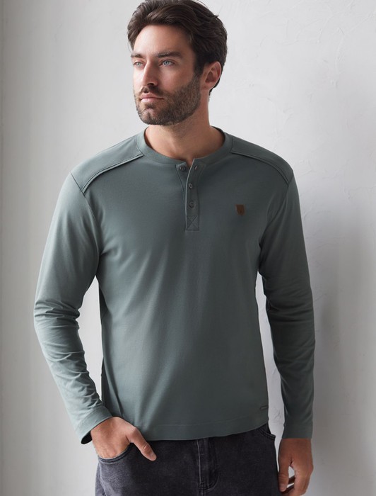 Состав: 92%Хлопок 8%ПУ Плотность: 170 Г/м2 Параметры модели на первом фото: Рост 190, бюст 108, талия 87, бедра 104 Размер товара на первом фото: 54Лонгслив темно-оливкового цвета с длинным рукавом выполнен из премиального хлопка с эластаном, Мягкий материал обеспечивает приятные тактильные ощущения, натуральный состав ткани позволяет коже дышать, удобен в повседневной длительной носке. Благодаря эластичному материалу лонгслив тянется и создает комфортный полуприлегающий силуэт. Подходит для маленьких и больших размеров, не сковывает движения и сохраняет форму после стирки. Облегающий лонг выгодно выделяет линии тела, при этом в нем ощущается свобода движений. Круглый ворот на металлических пуговицах создает стильный образ, который легко впишется в базовый гардероб. Тонкий джемпер дополнен нашивкой из эко кожи с логотипом бренда.