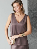 Vilatte Элегантный топ с V вырезом из струящегося сатина D23.068 кофейный