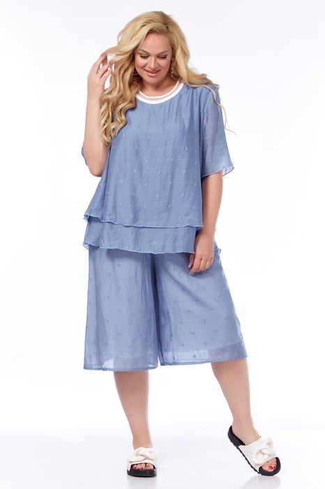 Блузка свободная А-образного силуэта, двухслойная, рукав втачной, горловина  округлая с притачным трикотажным довязом.