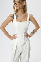 Атласная блузка-топ на регулируемых бретелях прямого силуэта, на широкой обтачке. Полочка с V-образным вырезом и нагрудной вытачкой, и печатью "Перо", и вышивкой бисером.