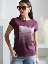 Vilatte Футболка с принтом свободная эластичная из премиального хлопка D49.136 б