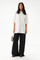 Трендовый матовый металлизированный эффект создает сияющий бронзовый блеск с серебристыми вкраплениями без излишней яркости — это делает топ нарядным и красивым как для праздничного события, так и для повседневной носки в комплекте с деловым костюмом или джинсами. Широкие лямки обеспечивают дополнительный комфорт в течение всего дня. Круглый ворот подчеркивает линию шеи, добавляя образу изысканности.