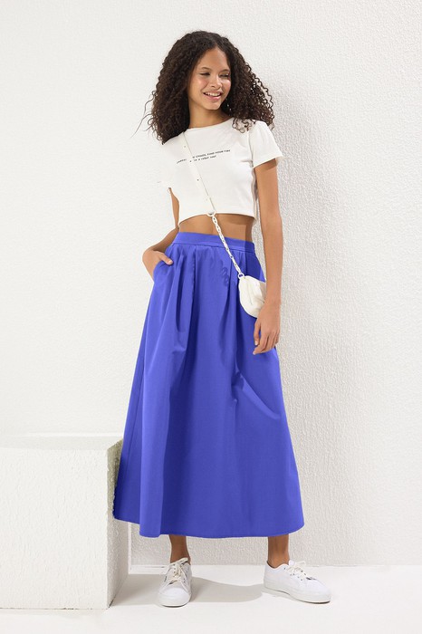 Совместные закупки Екатеринбург Женская одежда Юбки — TRENDYOLMILLA Lacivert Pile Detaylı Maxi Boy Dokuma Etek TWOSS25ET00158