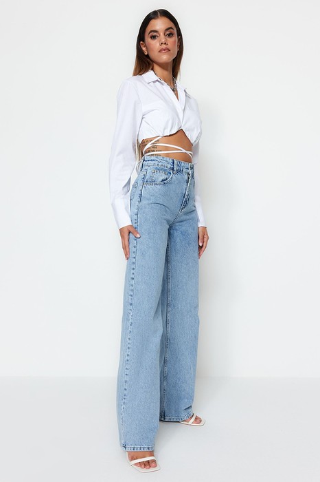 TRENDYOLMLLA Ak Mavi Yksek Bel Wide Leg Jeans TWOSS23JE0