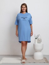 Домашняя туника из свободного силуэта, фигурный вырез горловины. На полочке печать