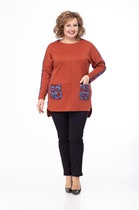 Туника женская свободного силуэта. Рукав реглан. Длина ассимернична. По переду туники выплен декоративный шоа. Карманы накладные функциональные.
