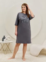 Туника женская из гладкокрашенного полотна «кулирка» с лайкрой, свободного покроя, с втачными рукавами длиной до локтя, горловиной овальной формы, обработанной втачной планкой и разрезами в боковых швах. На полочке принт, выполненный в технике «шелкографии».