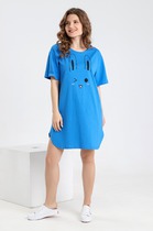 Двухцветная туника из кулирки. Светлый фон спереди, цветной сзади, принт в виде веточки с цветами. Рукава короткие, общая длина чуть выше коленей