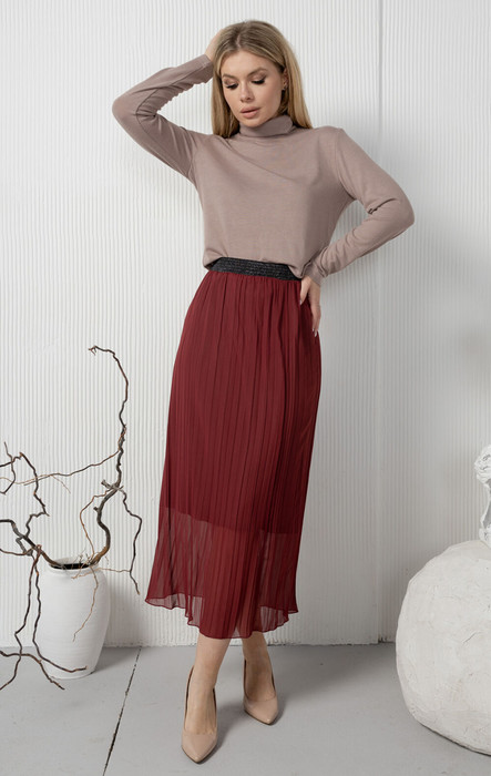 Очень модная юбка-гофрэ, шикарного винного оттенка. По талии красивая широая резинка. Подкладка из натуральноготонкого трикотажика.