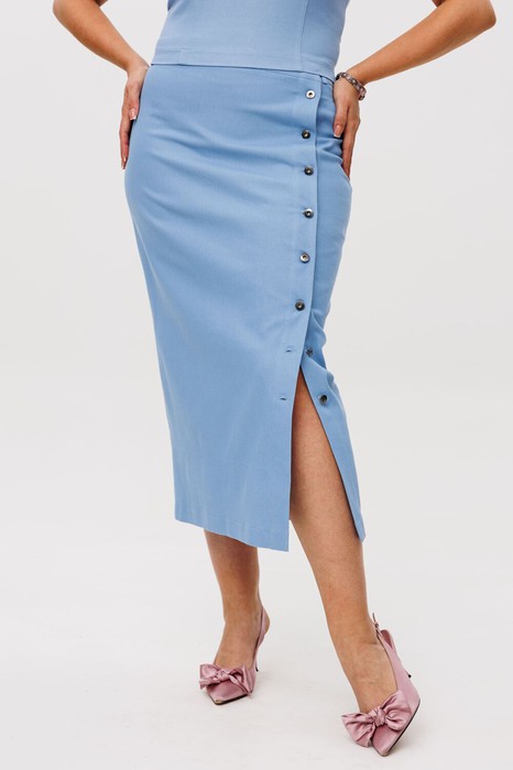 Кнопки спереди позволяют регулировать длину выреза, добавляя образу уникальность и удобство. Два кармана сзади не только придают юбке стильный вид, но и обеспечивают функциональность.