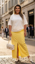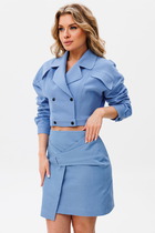 Юбка полуприлегающего силуэта со шлейками выполнена из фактурного полотна серого цвета. Характеристики: полуприлегающий силуэт, подкладка, пояс стабильный, застёжка - потайная молния, по переду два крупных накладных функциональных кармана, по поясу нашиты крупные декоративные пуговицы, шлейки выполнены из ткани основного изделия, не съёмные. Длина юбки 48 см, длина юбки со шлейками 83 см.