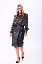 Юбка полуприлегающего силуэта выполнена из ткани плащевки на брендированной подкладе. Характеристики: полуприлегающий силуэт, пояс на резинке, по низу изделия пришито кружево. Длина по боковому шву 40 см.