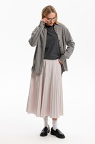 Юбка полуприлегающего силуэта выполнена из ткани плащевки на брендированной подкладе. Характеристики: полуприлегающий силуэт, пояс на резинке, по низу изделия пришито кружево. Длина по боковому шву 77 см.