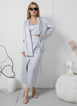 Юбка из ажурного трикотажа, расширенного силуэта, скроеная по косой, длиной миди. Пояс на резинке, с кулисой и серебристым шнуром. Изделие на трикотажной подкладке.