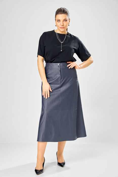 Юбка А образного силуэта, по переду и спинке рельефные швы, по переду от рельефа до бокового шва, карманы с листочкой, застежка на молнию в центральном шве переда. Верх юбки на поясе с застежкой на кнопки.