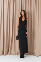Юбка женская, прямая, длиной уровня колена. Застежка на потайную молнию и шлица в среднем шве заднего полотнища. Юбка на отлетной подкладке.