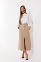 Слегка укороченная юбка - это вечный тренд, он не выходит из моды никогда. Выполненная из текстиля сложного переплетения "гусиная лапка" она станет вашей любимицей. Ее можно смело сочетать как со стильной рубашкой, так и с модной футболкой. Прямой силуэт, регулирующийся пояс, карманы в боковых швах, застежка по центру спинки. Длина юбки в р.44-46 около 48 см, в р.48-50 около 53 см. На фото с жакетом артикул 4140