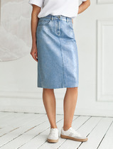 Vilatte Юбка с металлизированным покрытием D56.120 голубой-серебряный